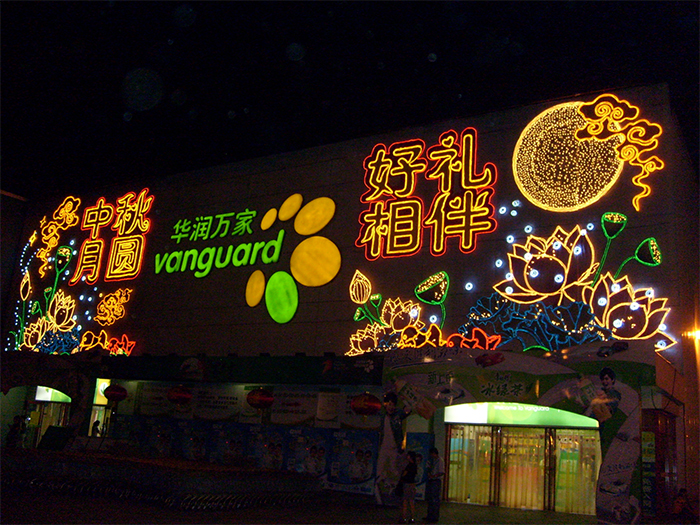商場外墻搭配商場外面的空間同進行亮化處理,效果可能會更好,當(dāng)然這是建立在商場外面具有足夠的空間的前提下。例如商場的廣場上搭配使用具有節(jié)日氣息的燈光造型,使商場節(jié)日氛圍更加濃烈,從而為顧客營造一種更加舒適、歡快的購物氛圍。