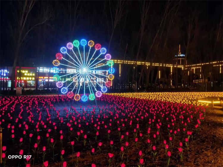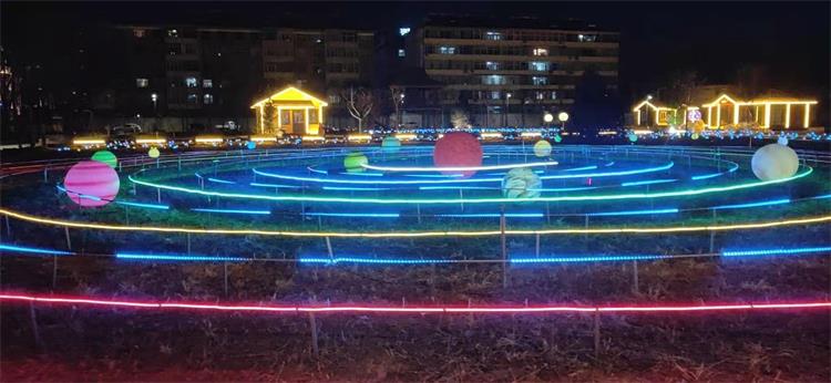 龍君展覽結(jié)合太行兒童公園自身特點(diǎn),為其設(shè)計(jì)了一套獨(dú)特的亮化方案。首先,將花卉作為太行兒童公園的特色之一,以花對花,使用五彩繽紛的發(fā)光郁金香造景,搭配夢幻摩天輪,可謂美輪美奐。另外,圓球燈和蒲公英裝飾燈在公園另外一處空地進(jìn)行亮化,錯(cuò)落有致的圓球燈點(diǎn)亮公園的一角。接下來,不得不提的就是“星球世界”燈光造景,從造型上方俯視全景,就像看到太陽系一般,只能用驚艷來形容。