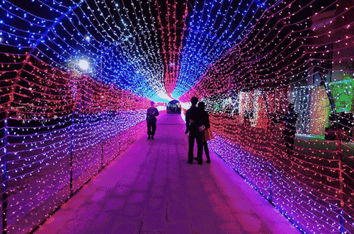 藥谷江村菊花園現(xiàn)在就是一片燈海,加上各種燈光造型的裝飾,更加美輪美奐?,F(xiàn)場有富士山、時光隧道、動態(tài)七彩花、鐵塔、星星隧道、梅蘭竹菊、LOVE等各類燈光造型,滿足廣大游覽者對燈光的幻想,可以說每個造型都能成為拍照的背景板,家人朋友們可以三五相約,去感受燈海的震撼和絢麗。